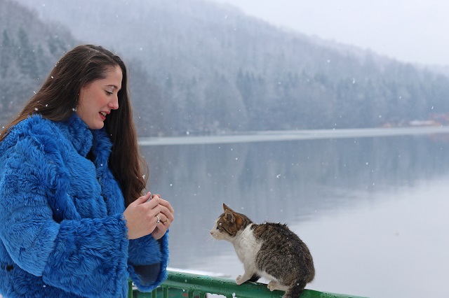 Primavara 2015 se anunta a fi un sezon al culorilor vii, atragatoare, iar Institutul Pantone a stabilit un top al culorilor noului sezon. Una dintre aceste culori este albastrul clasic,culoare asociata apei si cerului. Albastrul calmeaza, linisteste si inspira armonie. Este o nuanta care aduce senzualitate, eleganta, o purificare a privirilor si o electrizare a simturilor. Imi place cum aceasta culoare contrasteaza cu negru. Negrul are avantajul de a atrage atentia asupra culorilor alaturi de care este combinat, in acest caz albastru, care domina aceasta tinuta. Datorita faptului ca in timp ce faceam aceste poze a inceput sa ninga, locatia a devenit una speciala, un peisaj desprins din povesti.
